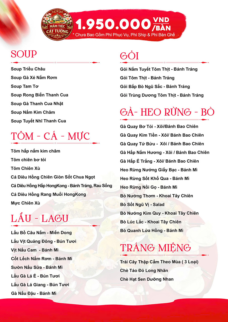 Mâm Tiệc Cát Tường – Đặt Tiệc Tại Nhà Chất Lượng, Trọn Gói Tiện Lợi